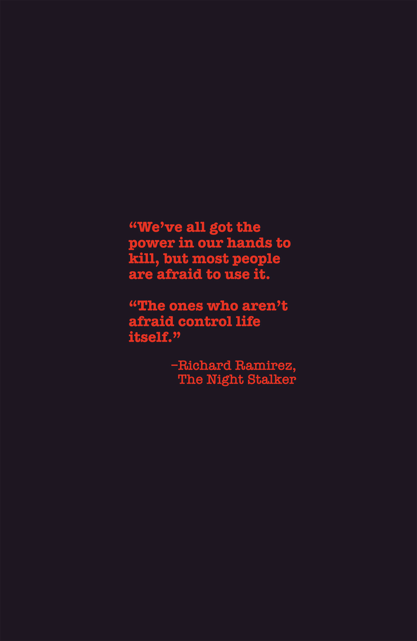 “The title for Those Not Afraid draws from a chilling quote from pure evil, serial killer Richard ‘The Night Stalker’ Ramirez: ‘We’ve all got the power in our hands to kill, but most people are afraid to use it. The ones who aren’t afraid control life itself,’” said Starks.