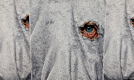 Paying homage to Jason Voorhees and his initial masked appearance in Friday the 13th Part 2 with the canvas grain…
