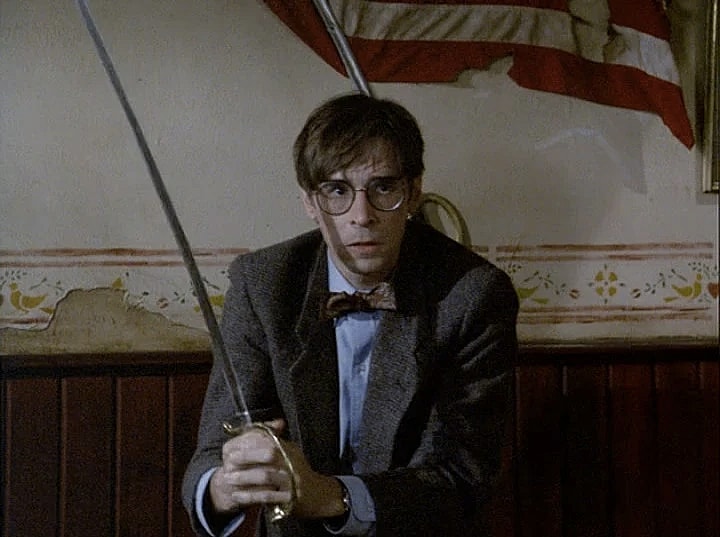 Thom Barry makes a fantastic Ichabod Crane stand-in with his lanky frame and hangdog facial expressions. Prior to appearing here, he starred in the ultra-violent early 80s slasher The Prowler. After this appearance, Barry would go on to have leading roles in John Carpenter’s Prince of Darkness, DeepStar Six, and House 3. That’s a heck of a run. Hope Lange (Jessie’s mother in A Nightmare On Elm Street 2: Freddy’s Revenge) also makes a brief appearance but the most notable performance comes from Fritz Weaver. Already having acted in four separate decades prior to his guest turn here, Weaver is best remembered by horror fans as Dexter from Creepshow’s best segment (I’ll take no arguments here) “The Crate.”