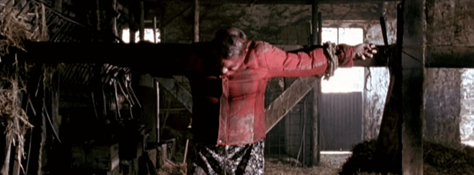 As punishment for trying to escape, Bartel nails Marc’s hands to beams resembling a cross. As the film’s title references Calvary, the hill on which Christ was crucified, the sacrificial reference could hardly be more clear. With the perversion of the holy crucifixion, Du Welz draws a direct line between bodily sacrifice on the cross and the demands of a domineering husband. Many followers of Judeo-Christian ideology use scripture to justify expecting women to sacrifice their own autonomy for the comfort of the men in their lives. The gospel tells us that Jesus chose to redeem the sins of humanity, but Marc has made no such choice. Not only is he being punished for the imagined sins of someone he has never met, but that sin amounts to a woman wanting to leave an unhappy marriage.