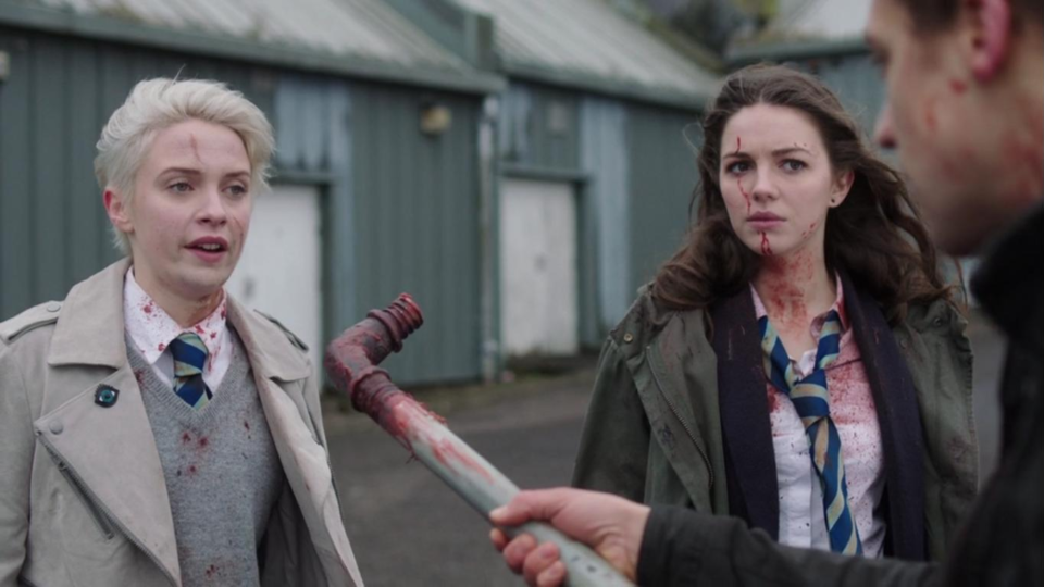 “BOOM! Saved your life,” Steph exclaims as she drives up in that getaway car. The friends get in the car, and in their minds is, “Where to next?” Strangely, for Steph, the next is that she’s gained a family. Not by choice, but by fate. Here’s to hoping that these remaining friends don’t abandon her throughout the remainder of the zombie apocalypse. I will take this moment to put out in the universe that we get to see this happen in a sequel to Anna and the Apocalypse. I’m gonna need another number from Steph with her raspy, belty voice. In addition, I’m going to need a number by Steph that is fully queer.