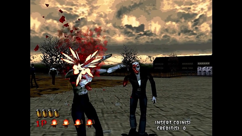 The House of the Dead is a wild rail shooter. In it, you’re often rapidly reacting to a lot of mayhem on-screen. Zombies are always tossing axes or barrels your way. Maggots keep leaping at your face, as do many other small, twisted humanoid creatures. Your only hope is to shoot these hazards out of the way in time. This requires you to have quick aim and a twitchy trigger finger. And a good eye for tracking your bullet usage. Can’t hit something if the chamber is empty.