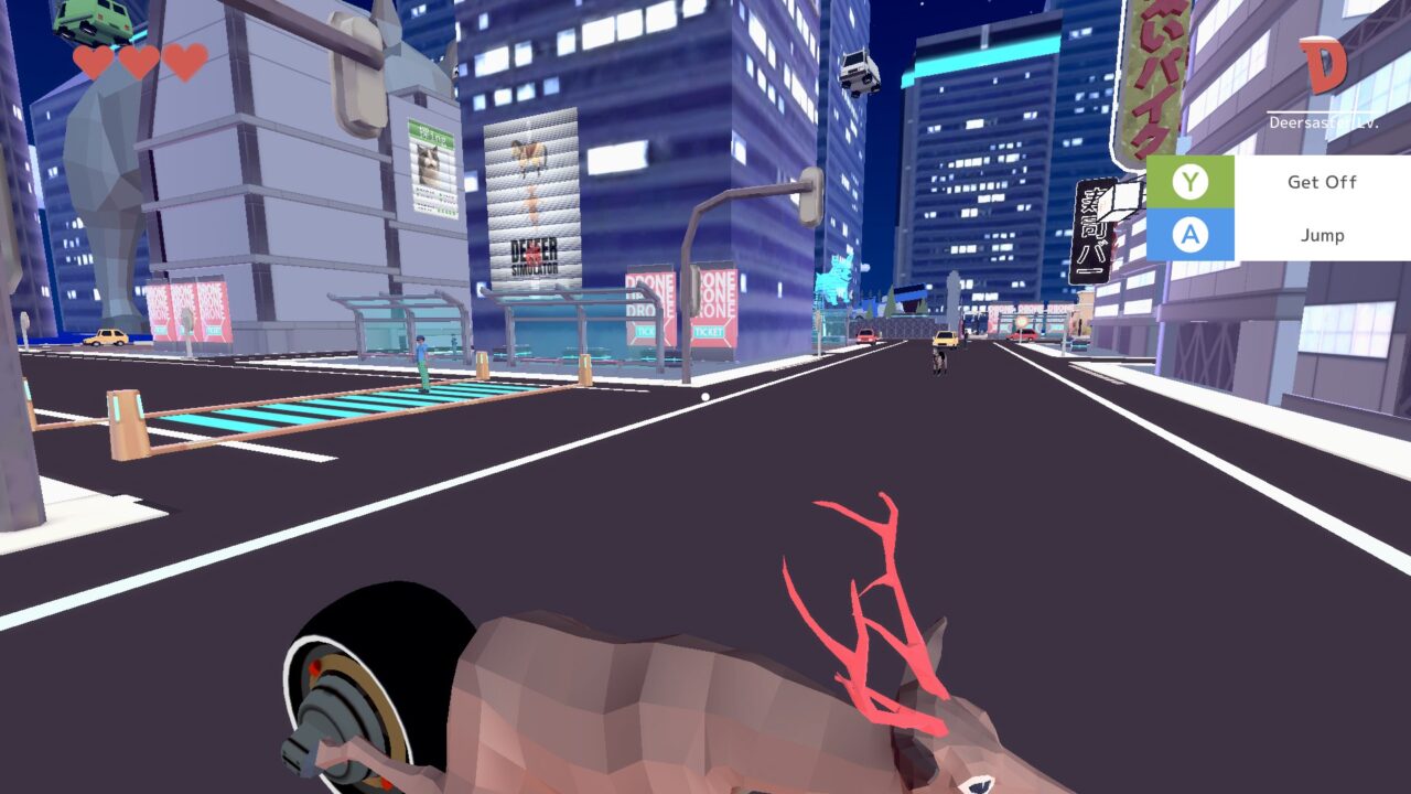If you dispatch the sheep police you can continue your rampage, before getting your destruction rating high enough to call down increasingly powerful police entities. Eventually, you’ll draw the ire of a giant police corgi. Defeating this corgi opens a time portal in the world that will transport you to the future. This…is very interesting. Seeing the future pulls the conversation back to legacy and our desire to last beyond ourselves. In the deer, we see a longing for a mark. Something to put a stamp on a world that has moved past the things that were done before. The future bears no marks of the righteous fury you wrought in the first area of Deeeer Simulator. It is a sobering reminder that even the most destructive humans cannot permanently ruin how people live. Humanity bounces back, even from a deer with no conscience.