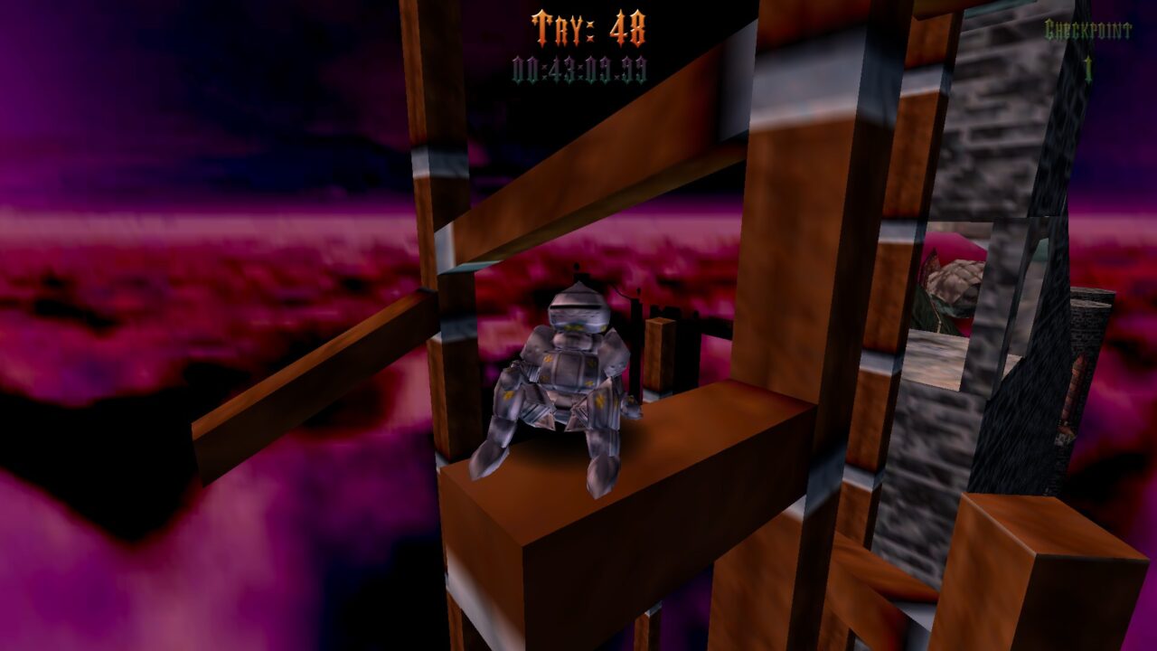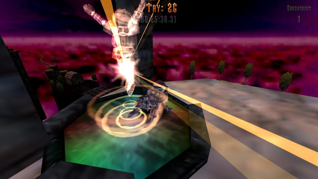 Knight’s Try is just one of those games. I respect the hell out of it. The audacity it has to repeatedly punish me for my mistakes. Well, well, well, if it isn’t the consequences of my own actions, should be the title of the game. The punishing platforming done well is rare. You normally get a punishing platformer with bad controls, a punishing platformer with bad graphics, or a punishing platformer that’s not fun. Knight’s Try does the impossible, threads the needle, and nails the dismount (unlike most of my dismounts in the game). It’s something you don’t often see in this day and age of finely tuned shooters and walking sim horrors. Haunted PS1 is great for the PS1 aesthetic, but it’s a rare treat to see a game control exactly like a game from their preferred possessed console.