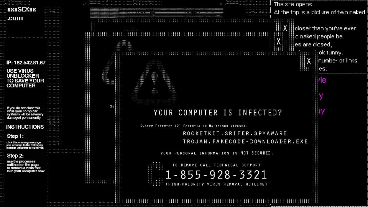 I never got caught throughout my time with the game. I don’t know if you CAN be caught (although I definitely got caught in real life, years ago). Either way, looking through these images draws up those old fears. The ASCII art, clicking on the various terms, and blindly wandering the internet looking for adult images dredges up those old feelings. It calls you back to that place of discovery, when you were first finding out about porn. It captures that mixture of arousal and terror – about being wound so tight at the possibility of being found out, but being curious to see more. And what will happen if you get discovered.