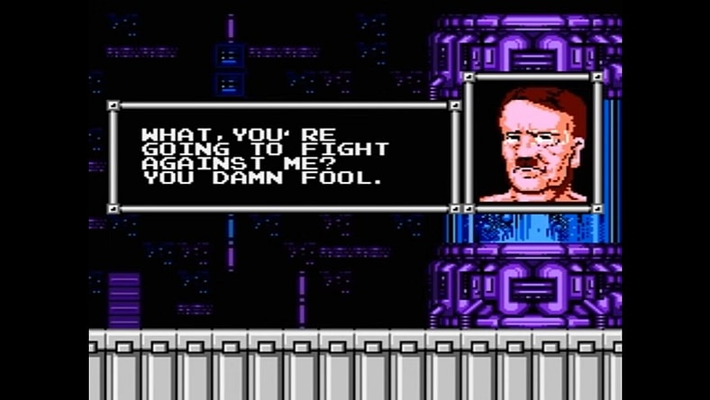 Once you foil his plans, Master-D tries to escape in a chopper. You need to swing from a high platform and land a single shot inside the cockpit. Having to land one precise shot makes for a thrilling conclusion. Not only that, but you get to watch Hitler’s head explode if you pull it off. This plays out in vivid detail. I’m talking several still screens of ever-more-exploded face. Honestly, though, I could watch this gruesome NES death happen over and over again.