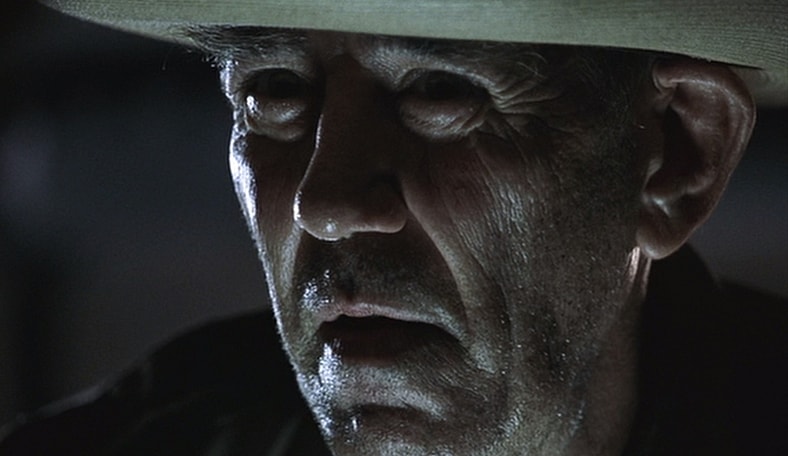 It is a testament to Bryniarski’s performance that an intuitive audience member can sense this backstory, even though it isn’t officially revealed until the prequel. Yet the deduction isn’t Sherlock Holmesian in this case. One need only observe Bryniarski’s body language as he brutalizes humans as if they were livestock… or look at the environment where he grew up. As a temperamental, mean-spirited old-country sheriff, Hoyt’s initially odd behavior is written off by our comparatively urbane characters as harmless bumpkin quirks. This gives Hoyt an edge, and Ermey uses it to slowly but surely slash the characters in his clutches into ribbons — figuratively, but only barely.
