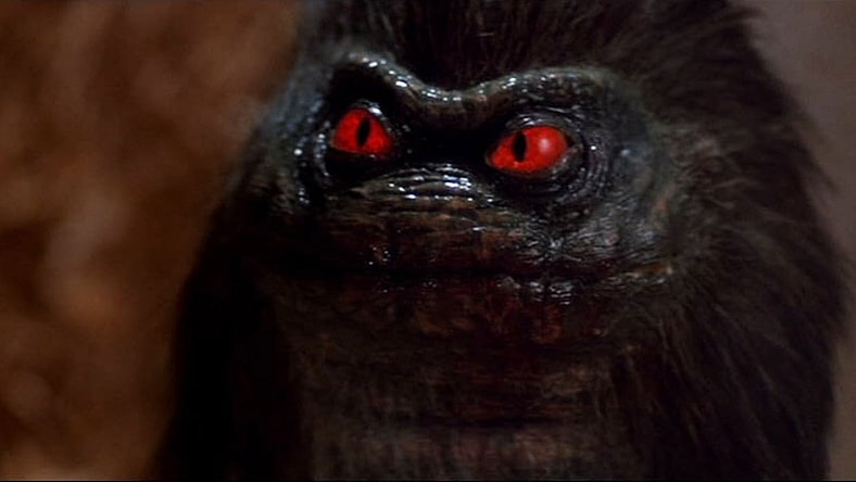 Director Stephen Herek’s (Bill & Ted’s Excellent Adventure) debut film is that perfect blend of silly comedy and horror that make it a prime “gateway” film for kids. Right from the get-go, we arrive at a prison ship in outer space. There, we find the mischievous little crites, a pair of Playdough-headed bounty hunters and a holographic alien straight out of a lineup of Star Wars extras. Be still, my monster kid heart.