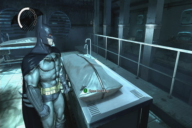 It all leads up to what has to be the scariest scene in the game, the morgue. When we enter the morgue, this ominous feeling is in the air. Everything is too pristine compared to the rest of Arkham. When you walk into the room, there is a platform where the mortician deals with the bodies. We also have the cold storage doors opening and closing while some ominous whispering is going on. But right now, there are three body bags just sitting in the open with no one around to properly handle them. So what does Batman do? Well, he opens them, of course.
