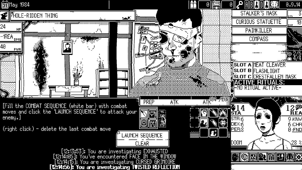 World of Horror is a weird one. Instead of having this set story, it is more along the lines of a roguelike. With the Old Gods reawakening, the end of the world is nigh, and it is up to us to investigate mysteries going on in town. As we unravel the mysteries, the world changes and opens up, leading to more investigations.