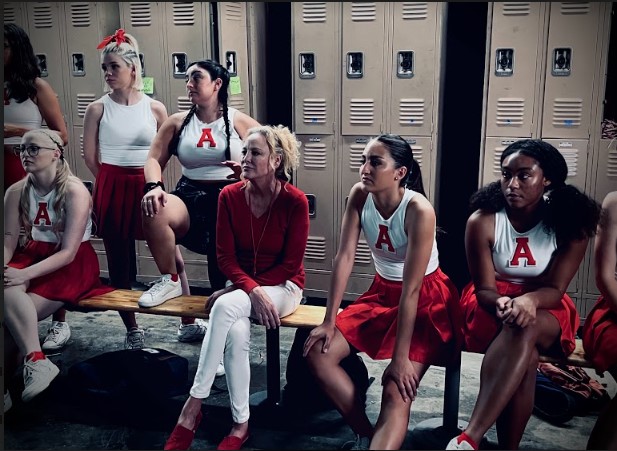 I had the title and the idea for the container for the film immediately: Give Me An A. The cheerleaders’ theme came with so many inherent stereotypes, assumptions, and references but also power, evolution, and strength. It carried so much of what I wanted this film to say without having to do anything. I thought about being in the locker room getting ready for practice. How sexualized a locker room of girls can be. But how when you’re that girl in that locker room it’s just another normal part of your day.