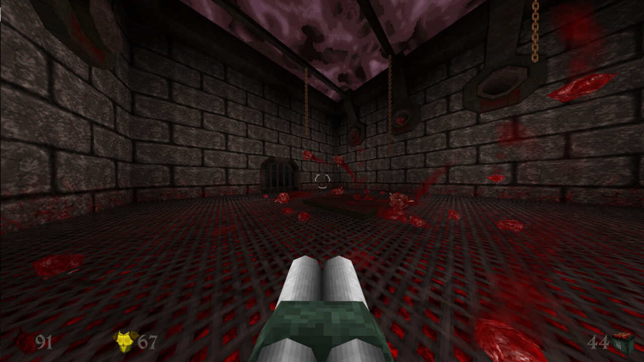 The formula combines the aesthetics and atmosphere of Quake 1 with the fast paced and responsive gameplay of Quake 3.