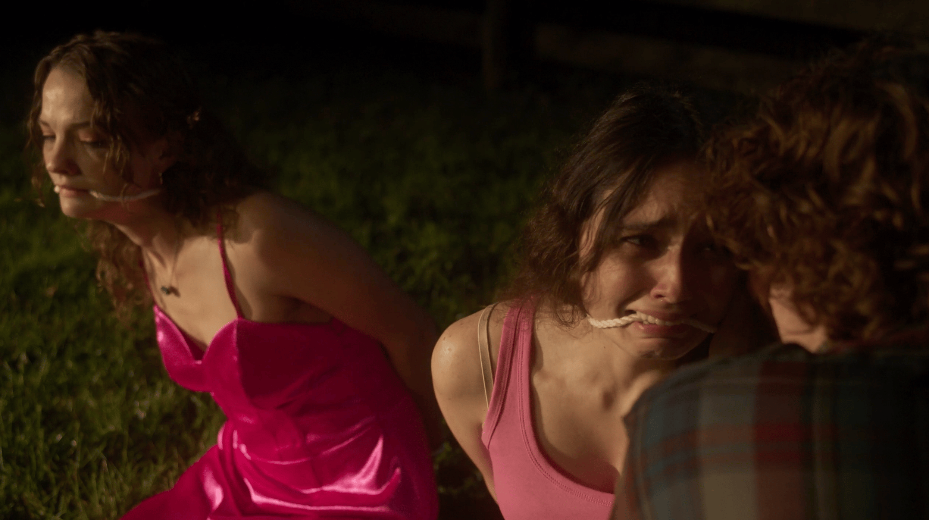 “The film follows Abby, a teenage girl who attends a party hosted by a frat boy named Cody,” McAndrews tells me when asked to summarize Bystanders. Reliably unflinching, she continues, saying: “Things take a horrific turn when Abby and her friends are drugged, assaulted, and hunted through the woods. One girl escapes and encounters a couple returning from a wedding, setting off a cascade of events.”