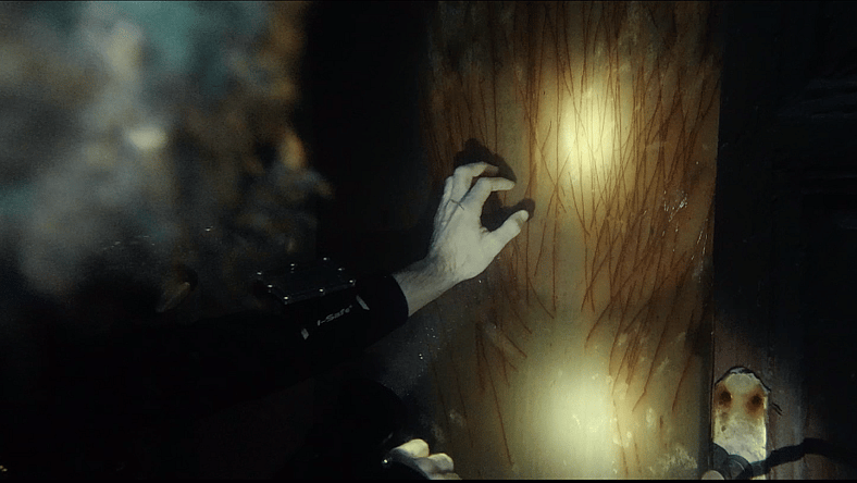 The clip teases the horrors to come with unexplainable scratches inside the door. Plus, it shows off the found footage techniques Maury and Bustillo utilized to make The Deep House even more claustrophobic.