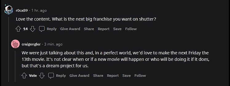 Shudder’s General Manager, Craig Engler, held a Reddit AMA today and dropped quite a few gems. While I was living for his favorite horror movies and a quick peek behind the Shudder curtain, it was one answer specifically that made me lean forward. When asked about the next big franchise Shudder would like to acquire, Engler mentioned they would like to be a part of the next Friday the 13th.