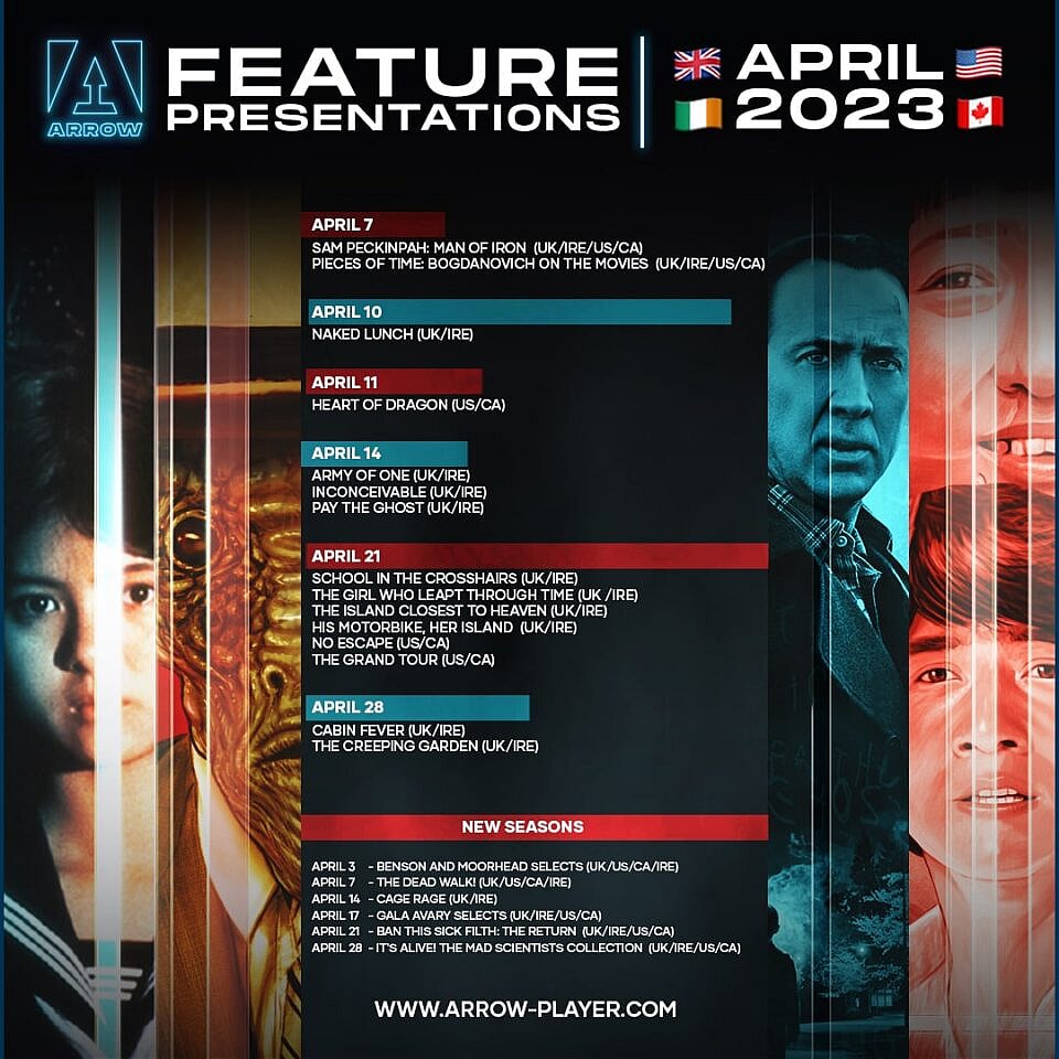 Arrow Video is excited to announce the April 2023 lineup of their subscription-based ARROW platform. It’s available to subscribers in the US, Canada, the UK, and Ireland. This month includes the Living Dead, Gangsters, Mad Scientists, and Odes to Peckinpah & Bogdanovich