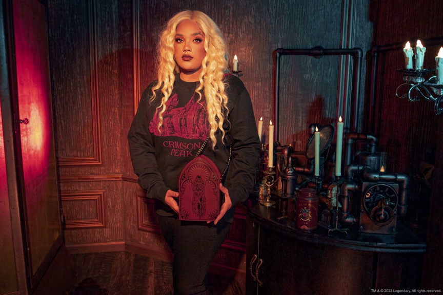 “We are excited to be working with Legendary again after our collaboration with them for our sister brand Vixen,” says Micheline Pitt, co-owner and designer of La Femme en Noir. “With all of our collections and collaborations, we look to films or franchises that we love personally. We want each film to invoke the same aesthetic as our brands, often filled with elaborate world-building, costumes, and a dark gothic beauty that speaks to us. Crimson Peak features such rich visuals and costumes so beautifully draped in horror that it felt like a perfect fit for our brand. We are excited to expand our offering of Victorian-inspired pieces with this new collection, as we welcome you to Allerdale Hall.