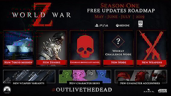 Saber and publisher Focus Home Interactive are planning a ton of upcoming content for World War Z over the coming months, including a new mission set in Tokyo, new weapons and enemy types, an extreme difficulty mode, and weekly challenges. Have a look at an image of the roadmap below, and stay tuned to Saber’s website for further updates.