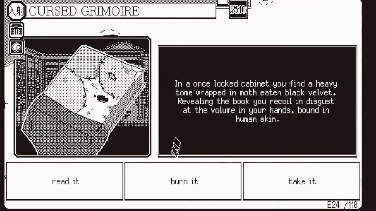The second scenario involving the dead grandfather was more robust. Upon entering his estate, you are given a map of key locations you can return to at will. The goal is to perform a series of very specific funeral rights. At 9 a.m., pray over the body (bow – clap – bow – clap). At 11, beak for lunch. At 1, burn an unopened letter in the study. At 3, cover a mirror. At 5… maybe sacrifice someone? It gets fuzzy at that point. Each time you explore a new room, it takes an hour of in-game time. You only have so many chances to explore while also sticking to the ritual’s timeline. This means that completing the ritual is up to a significant amount of chance, but don’t worry. This is where I learned that failure in World of Horror doesn’t mean game over. Sometimes, it means a new terrible curse is inflicted on the world.
