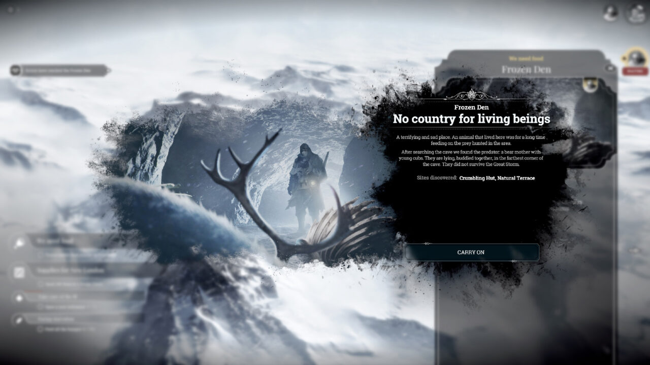 - Circumstances will force players to explore and adapt to the frozen wilderness