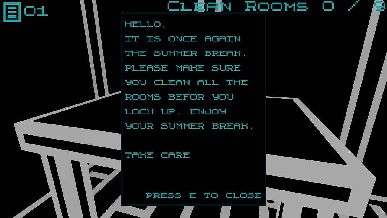 This is a quick little game by itch.io dev AndideBob. Looking almost like a first-person mix between Tron (1982) and an Airdorf game, Always Watching has you playing a janitor after the last day of school. Tasked with cleaning up the rooms and locking the doors for the summer, things quickly turn from the day before vacation into an Edgar Allen Poe story. When you play it, you’ll know the one. No, not the one with the cask. The other one.
