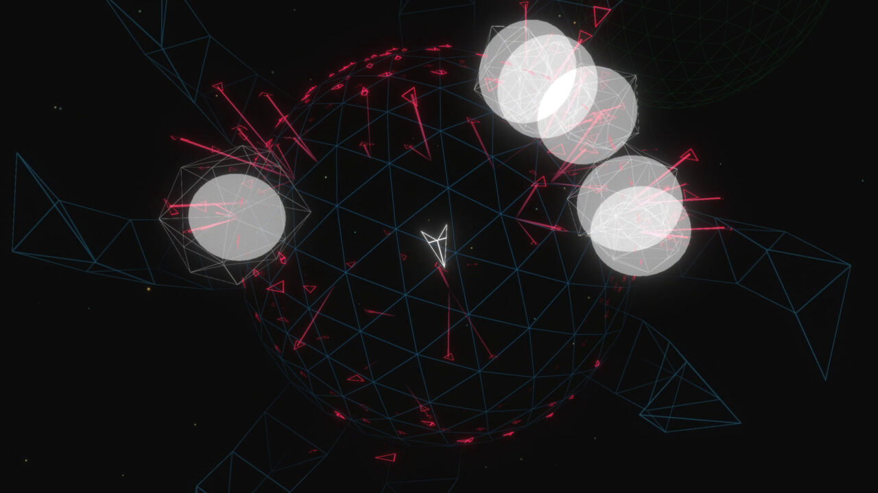 However, there’s a catch. The only enemy in Terror Squid is yourself. Instead of fighting off other enemies, you need to move around the globe, dodging your own bullets that you involuntarily shot. The longer you survive, the more difficult this becomes as more bullets fill the globe. You can change your firing patterns, in case you’d rather dodge wavy bullets or shotgun blasts, but your fate is always the same. Eventually, you kill yourself. Dark.