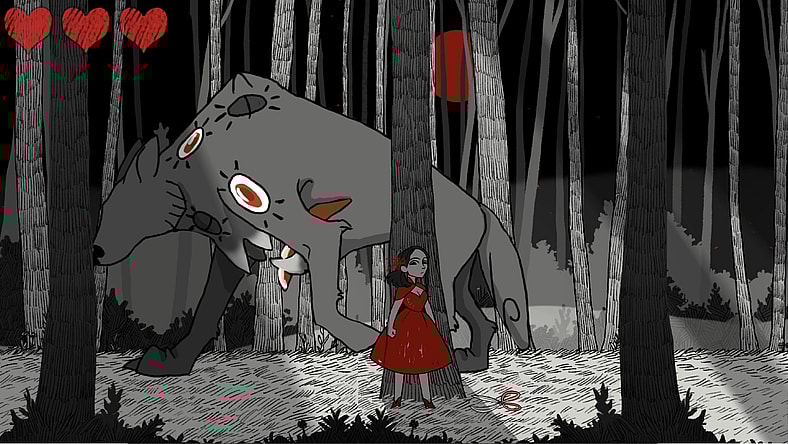 I hope you’re ready for a truly remarkable Ultra-Indie Daily Dose! Our game today is Little Red Lie by indie developer Milpitians. Based on the classic fairy tale of Little Red Riding Hood, this game begs to ask: who’s afraid of the big bad wolf? The answer is that all of us should be.