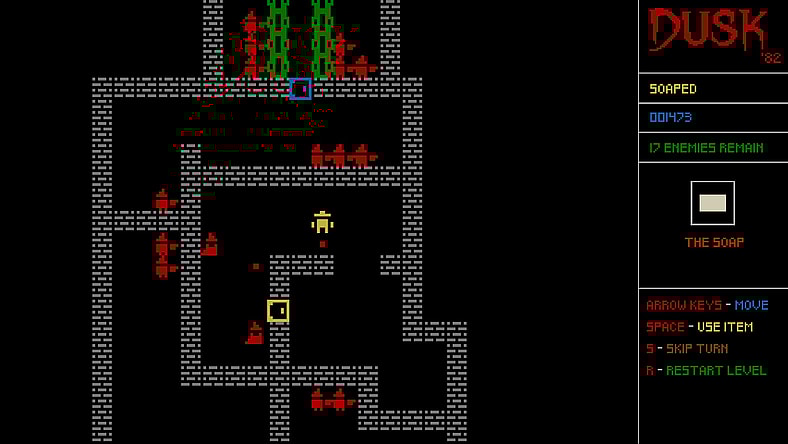 Probably the biggest of their jokes was that Dusk was getting a demake called Dusk ’82. Looking, and playing, more like Chip’s Challenge than Dusk, you’ll move around puzzling environments and push blocks. Of course, it’s still Dusk, so there are enemies that shoot at you and you need to find shotguns to shoot back. Still, it’s certainly an interesting take on the game. The game also has interesting features, like letting you drop your own music into it, and promises to come with “two free retro ASCII games.”