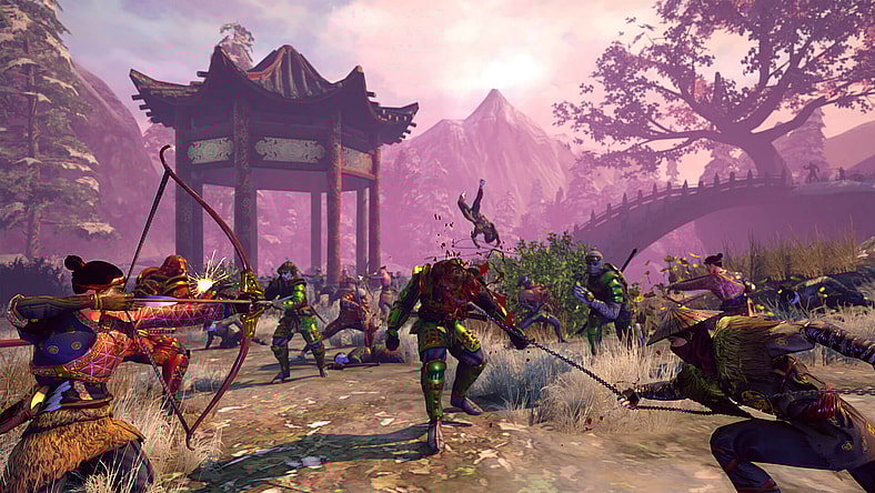 Each map includes various unique obstacles and mechanics which will require cooperation and strategy to win. Destroy castle gates to create a new point of attack, use ritual sites to buff allies or weaken enemies, and utilize other dynamic changes to the in-game environments. Manage your Ki to block attacks, sprint, meditate, or use special class skills.