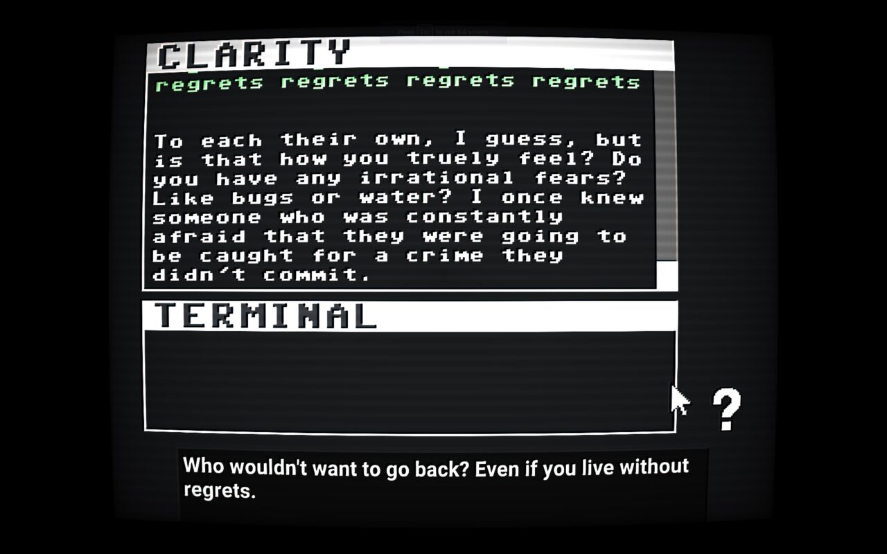 You converse with the computer, generally just by throwing keywords back at them, and the computer gets to know you a bit better. However, before long, the computer seems like it knows you a bit too well. Out of CTRL ends just as it’s getting really good—it was, after all, a 48-hour game jam product—but a new, fuller sequel is on the way.