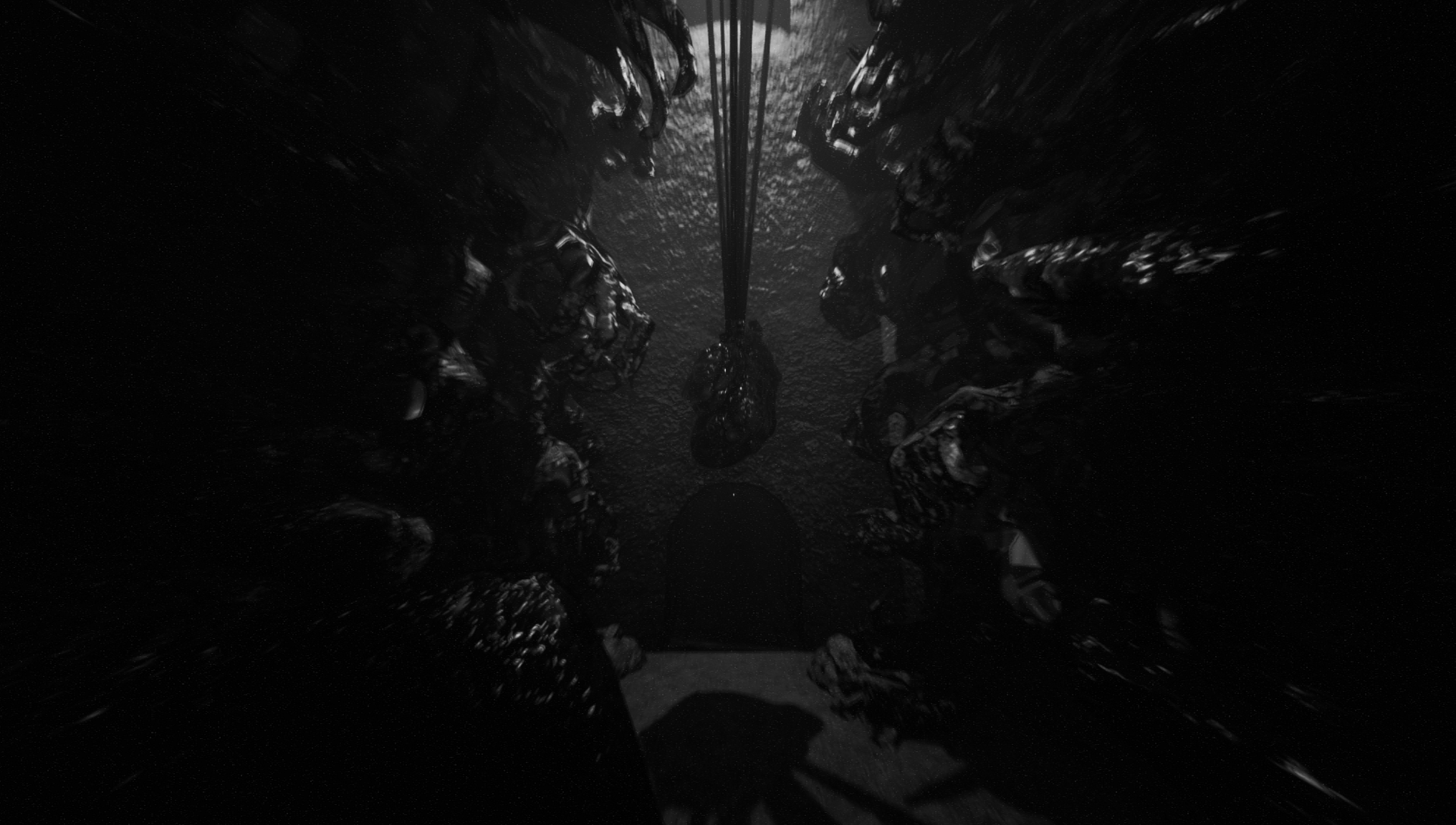 The environmental design doesn’t show its hand despite leaning heavily into a flesh horror world. The environment is full of sewer bricks and large caverns made of calcified flesh along with the occasional writhing hand grubs. Progress is more akin to an obstacle course at times or a walking simulator, while more minimalist it shares some familiarities with Carrion and the upcoming Scorn.