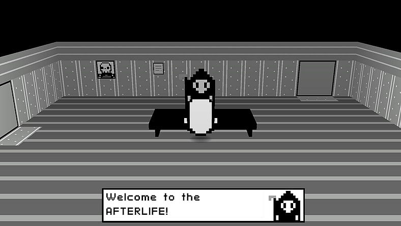 AFTERLIFE has some light Binding of Isaac-style fights, where you can shoot projectiles in four directions. But much of the game is simply conversing with the numerous people in the world around you. There is plenty of dialogue in this game, much of it very meta. AFTERLIFE and all its inhabitants seem highly aware that this is a video game.