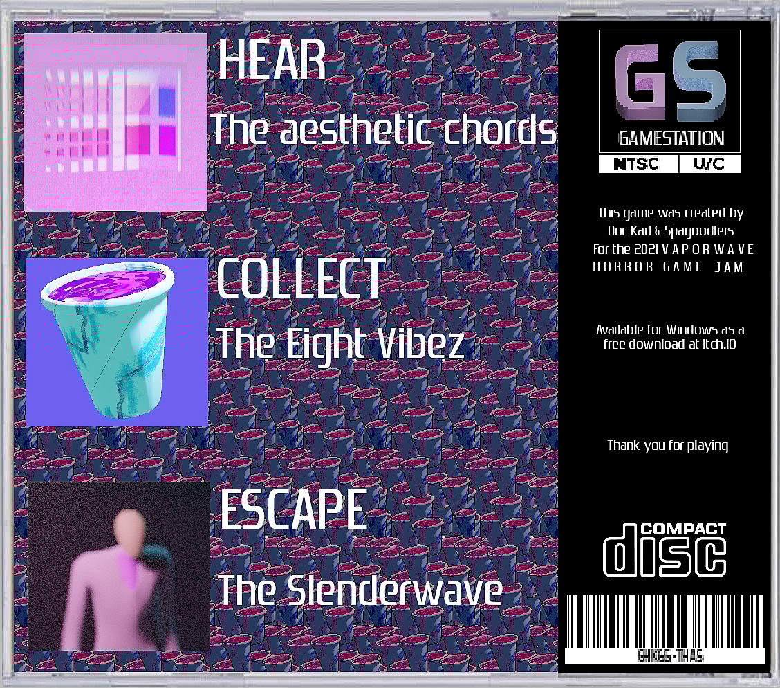 The premise of Slenderwave & The Eight Vibez is that you are trapped in a dark and sinister arcade, you must play a dark and sinister arcade game. Transported into a dark world of Windows 98 imagery and marble statues, you must run around collecting 8 cups of perfectly legal grape juice. But we warned; the Slenderwave is hunting you, and if he catches you before you get all your definitely-not-codeine beverage, he will give you a vibe check you will not survive.