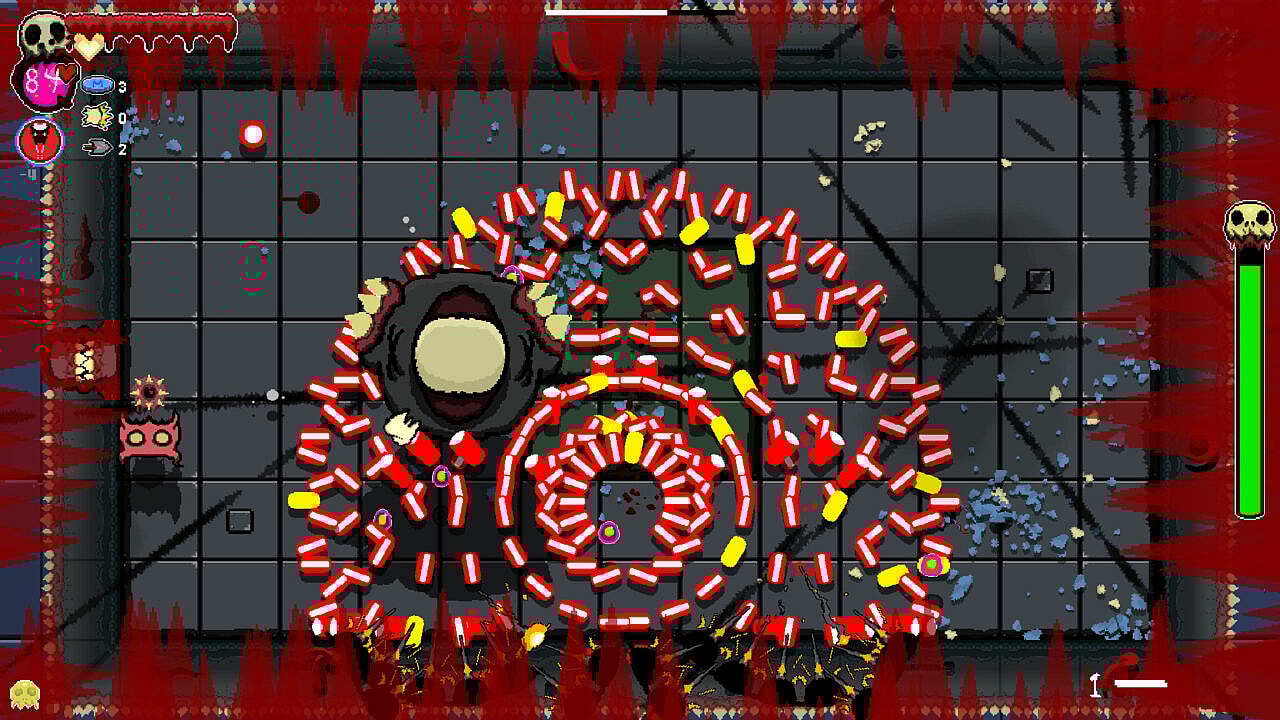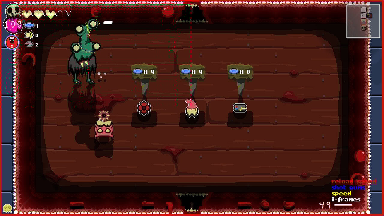 While I love the style, Cavity Busters has a few things that troubled me. Mainly, just how complex it all is. Isaac is pretty straightforward; shoot creature, take loot. Cavity Busters has so many new features that I almost didn’t know what to do with them all. Sometimes I would leap in the air and forget how to land. A few times I attached myself to a wall and zoomed around on accident. These issues are, of course, on me. With a little more time I feel like I could get the hang of it better. But complexity is not always a plus for some people.