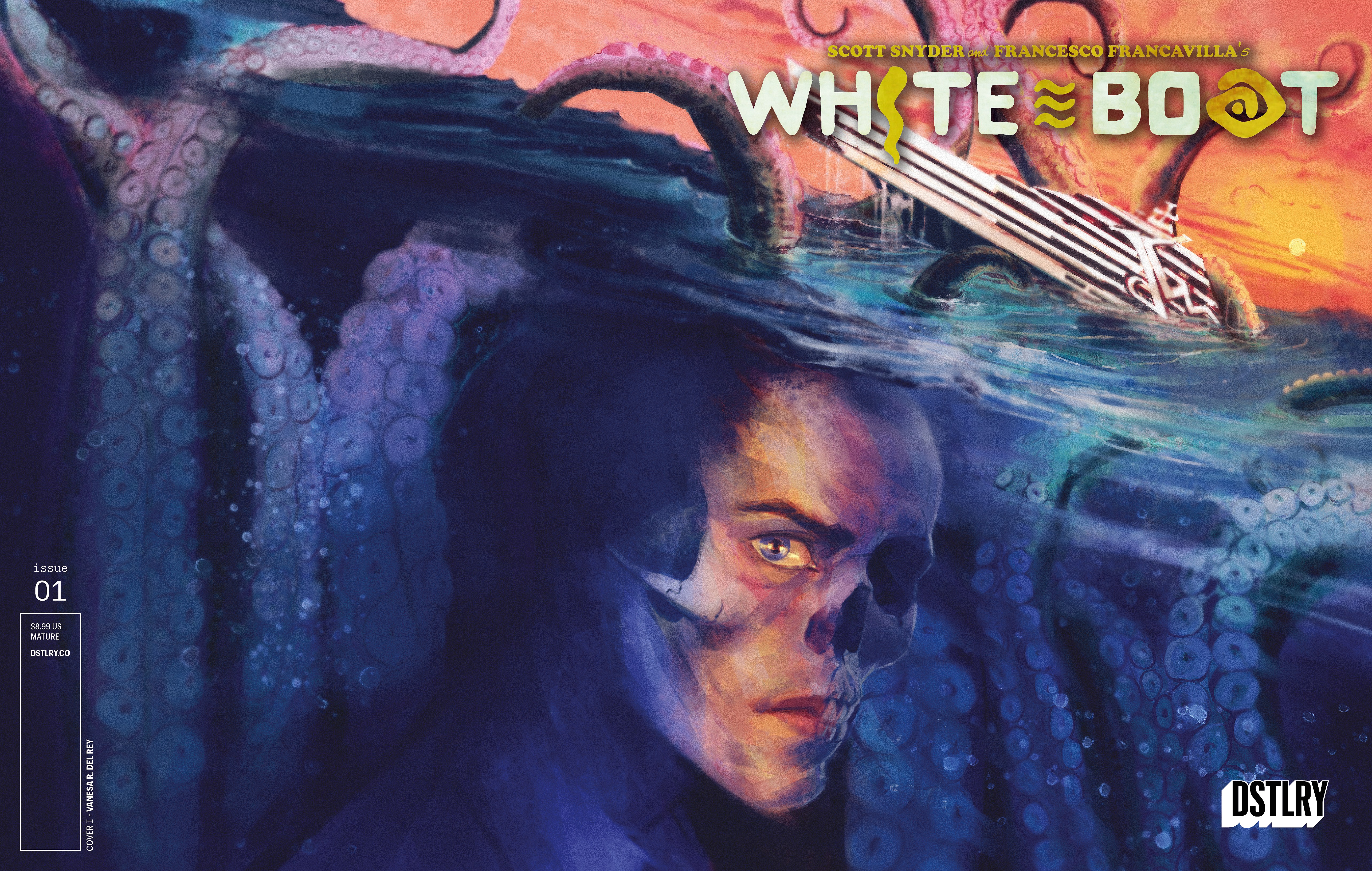 Grab your boat shoes and get ready to descend into cosmic madness with the latest horror release from DSTLRY, White Boat. This new horror series comes from multiple Eisner-award-winners Scott Snyder and Francesco Francavilla. In honor of the series hitting shelves, we’ve got an exclusive look at a few terrifying and gorgeous variant covers.