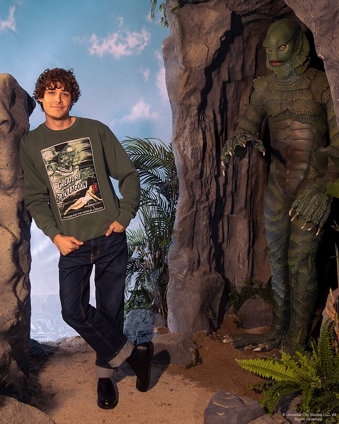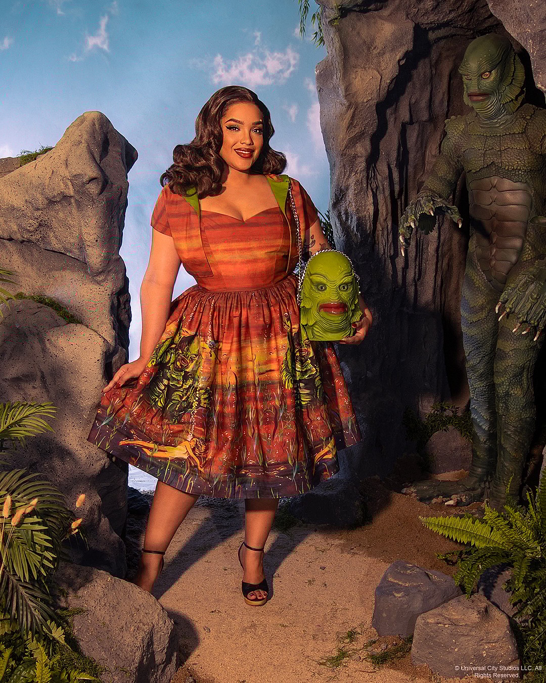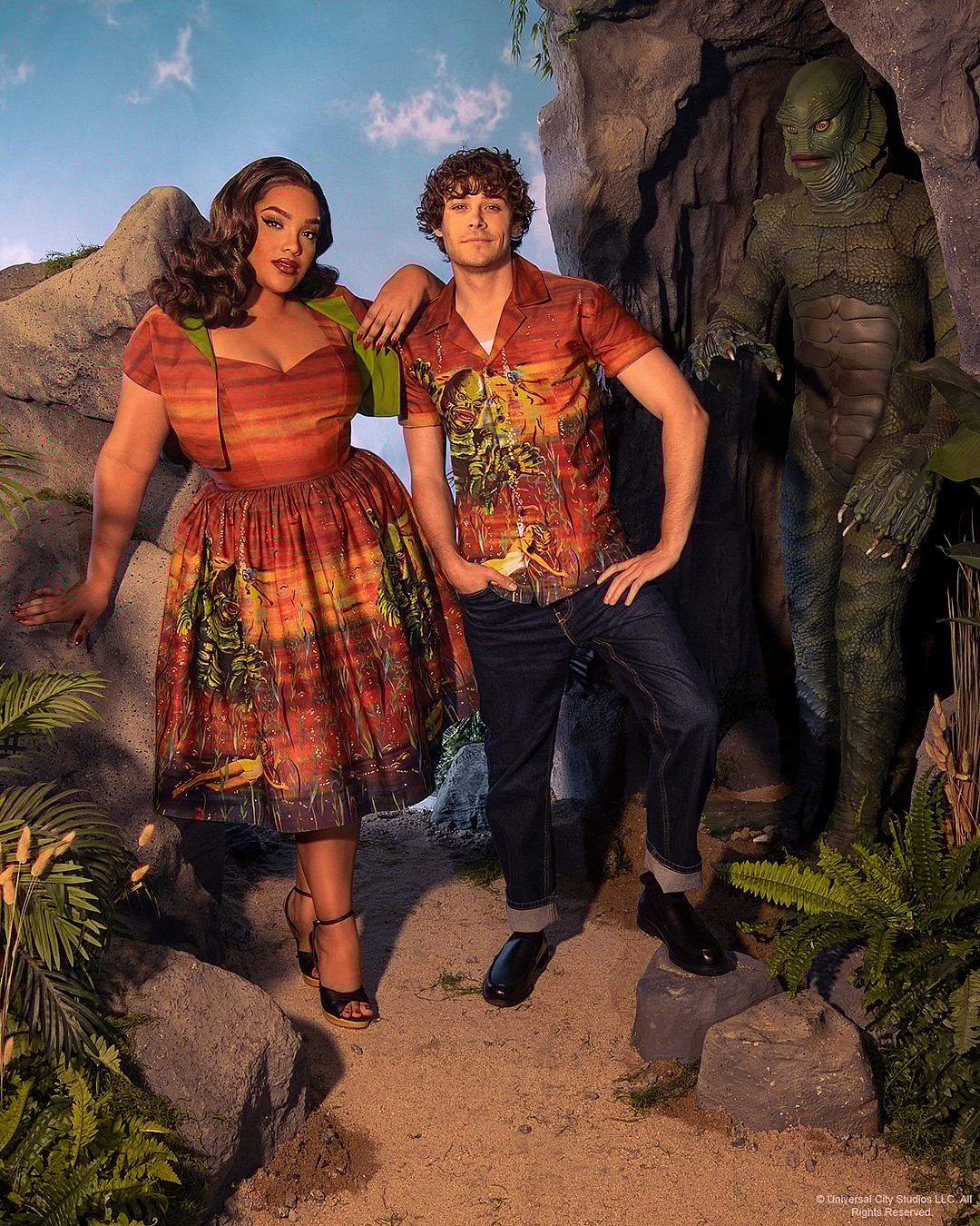 The collection is a celebration of the seminal 1954 film and the titular creature at its center, famously designed by Budd Westmore and Millicent Patrick. “Our goal was for fans to be able to immerse themselves in the magic of classic cinema with these iconic looks, brought to life for the modern wardrobe,” said Pitt.
