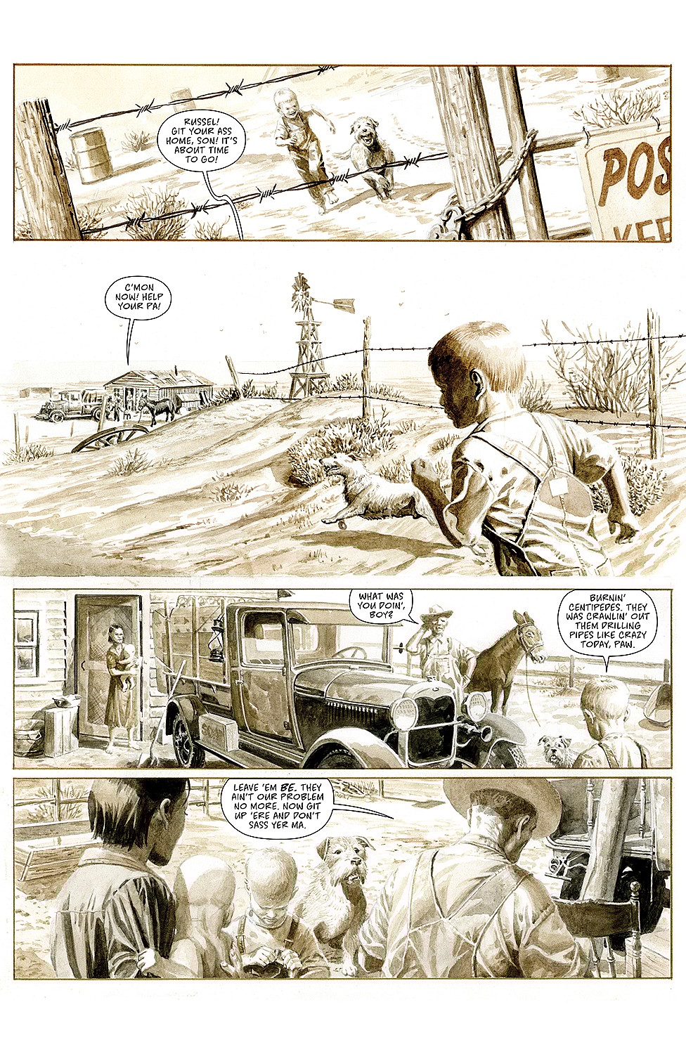 “When I was a kid, I loved listening to the old folks tell stories of the difficulties living through the Great Depression, and surviving the American Dust Bowl. It was almost inconceivable what these poor people lived through as the result of rapid modernization, politics, war, and blind greed. Massive walls of dust that blew so hard they sandblasted everything in their path. Cattle killed by crackling rods of static electricity. Biblical plagues of hungry jackrabbits so dense it was like the earth itself was on the move. Shellshocked, disfigured veterans staggering along lonely highways, looking for food and shelter.“