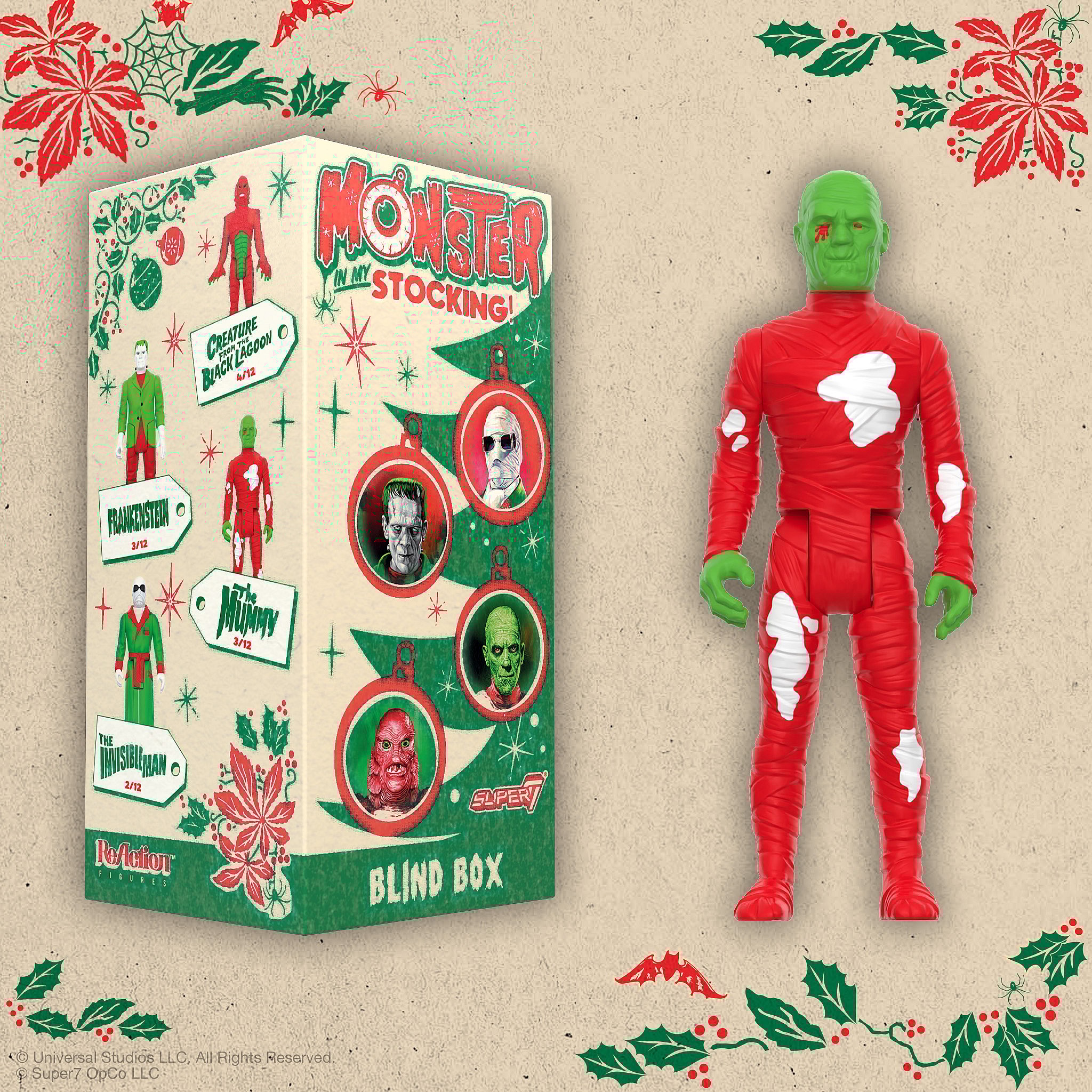 The weather isn’t the only thing that’s “frightful” this holiday season, now that the Universal Monsters “Monster in My Stocking” Blind Box ReAction Figures are here! The figures feature one of four unique Universal Monsters designs all in festive red and green colorways, secreted in blind box packaging ready for you to discover which variant hides inside! They’re the perfect stocking stuffer for the horror fans in your life.