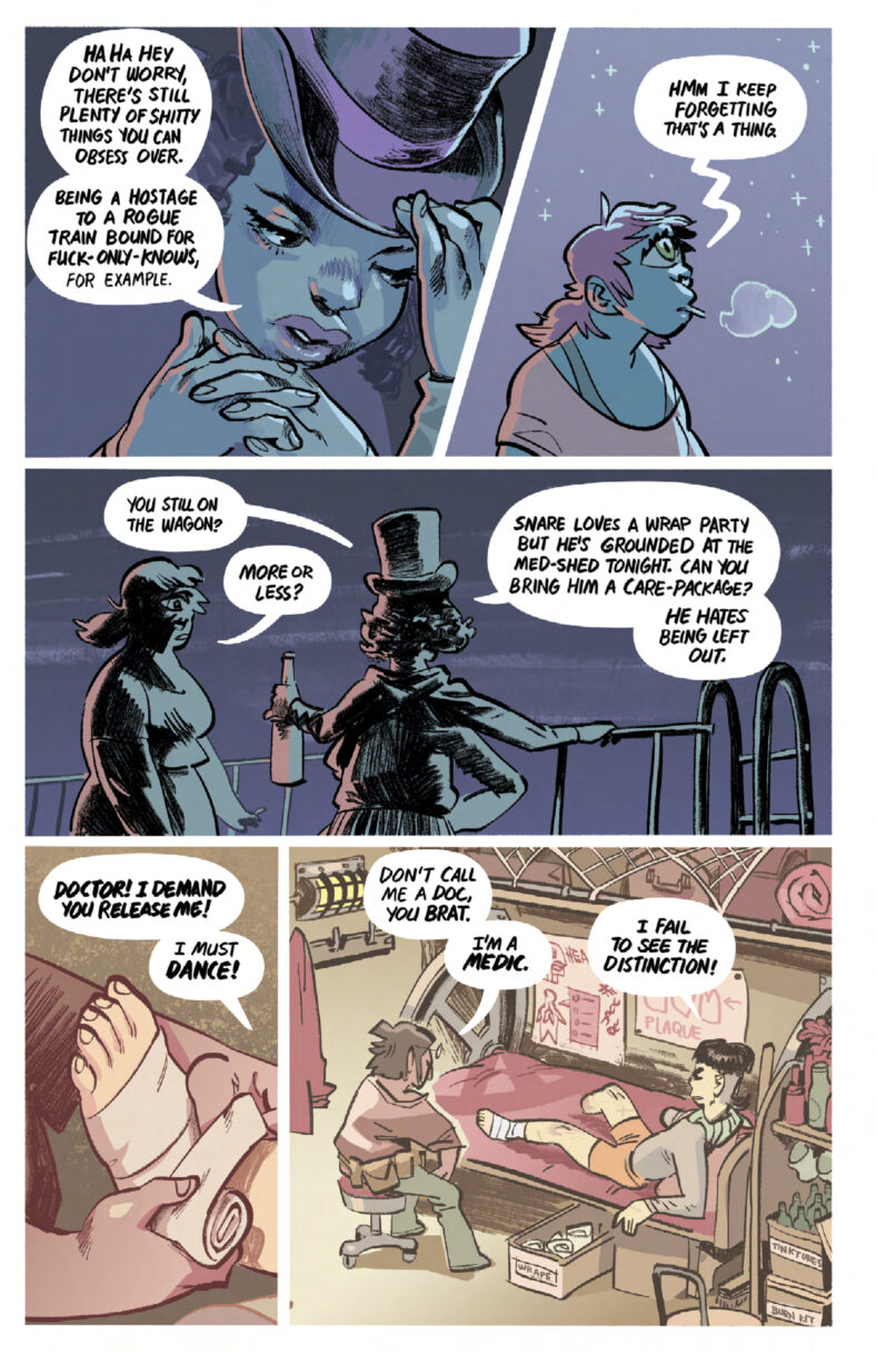 Iron Circus Comics is proud to announce their first project of 2025: The Unsinkable Ship Of Fools, a raunchy supernatural graphic novel by breakout artist Jonas Goonface, co-creator and artist of Godshaper. The Unsinkable Ship Of Fools follows a mysterious magical train populated by a group of mangey misfits with no way to get off… well, off the train, anyway.