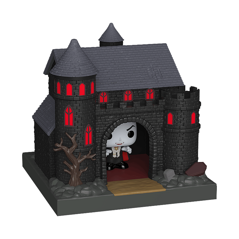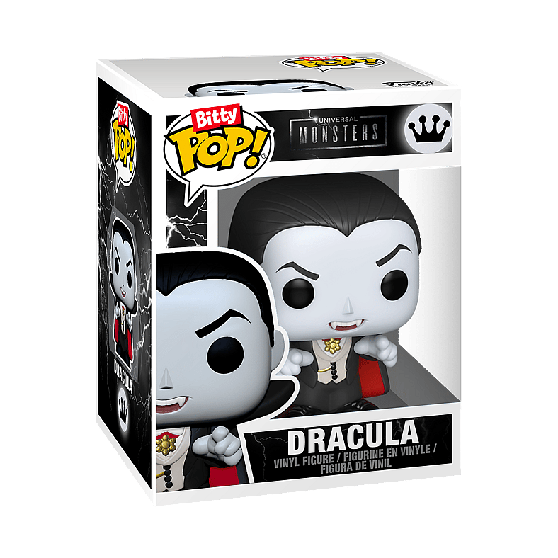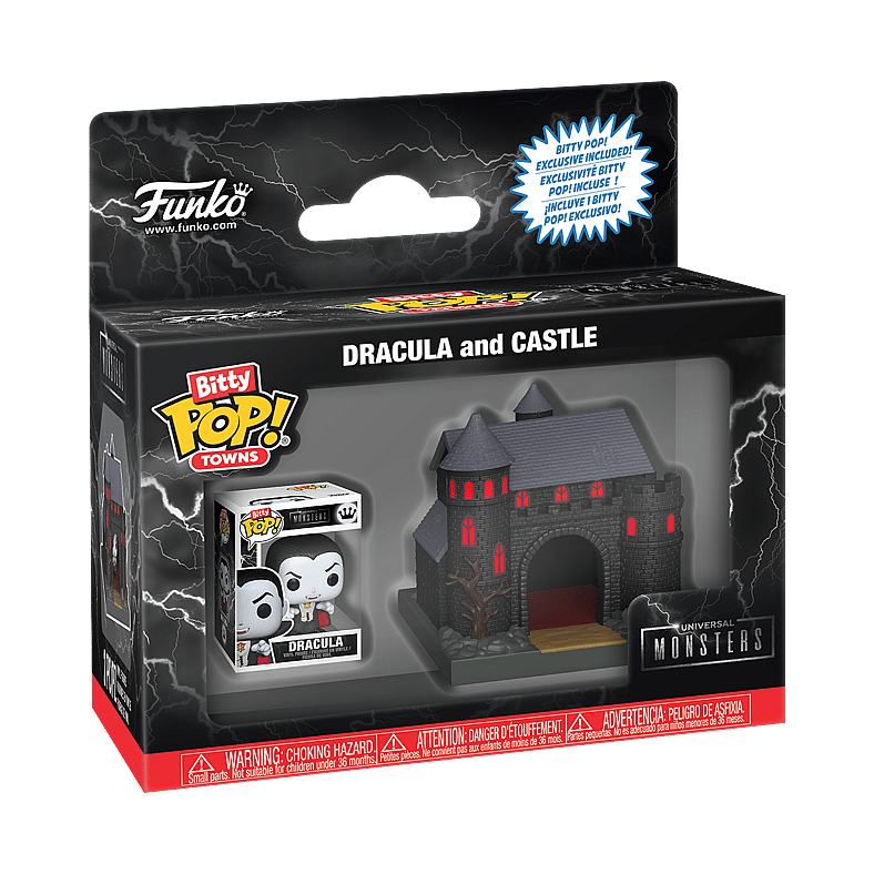 The world of POP! is getting bigger—and smaller—with Bitty POP! collectibles! Expand your Universal Monsters collection with Bitty POP! Towns Dracula and Castle! Bitty POP! figure is packaged in a hard acrylic display case with a detachable bottom lid. The detachable bottom lid doubles as an acrylic base, to which the Bitty POP! figure is adhered. Remove Bitty POP! Dracula from his display case so he can step inside the Bitty POP! Towns Castle!