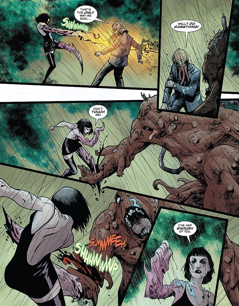 If you love the gnarly body of 80s horror classics like The Thing, Videodrome, and Robocop, then you’ll want to pick up a copy of Warm Fusion. This new three-issue series from writer Scott “Babydaddy” Hoffman (founding member of Scissor Sisters) and artist Alberto Ponticelli (Frankenstein: Agent of S.H.A.D.E.) is described as a neon cyberpunk body horror blockbuster. And we have an exclusive preview of the final issue of the series below!