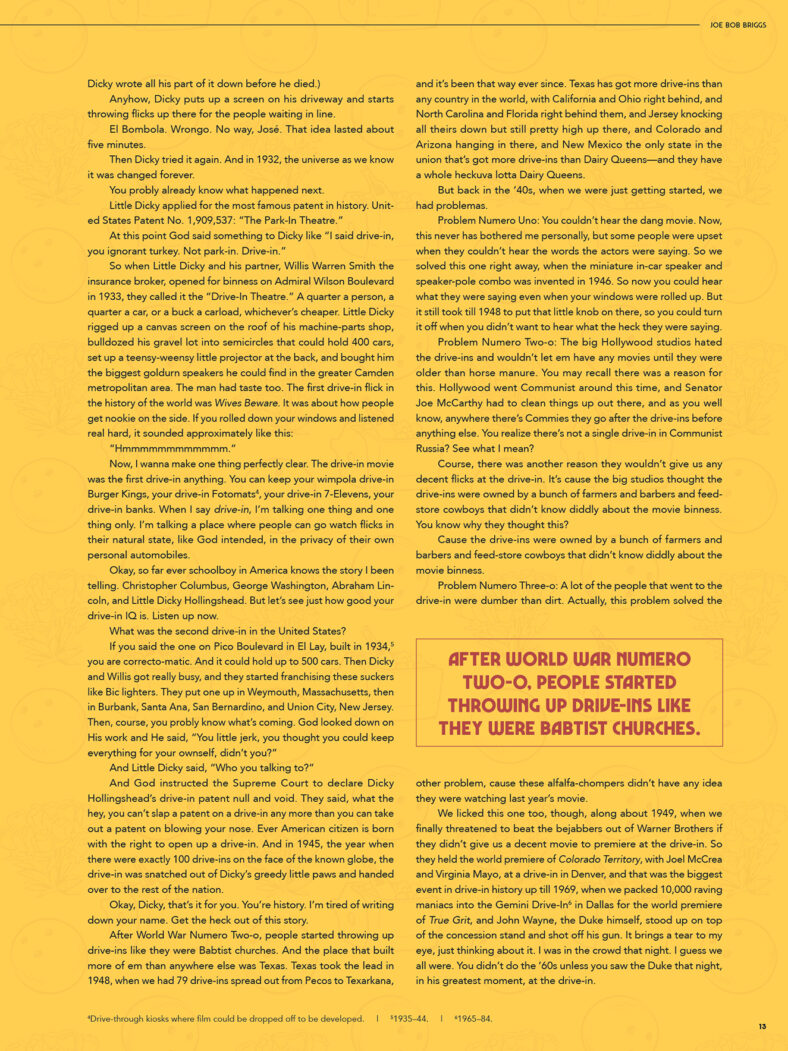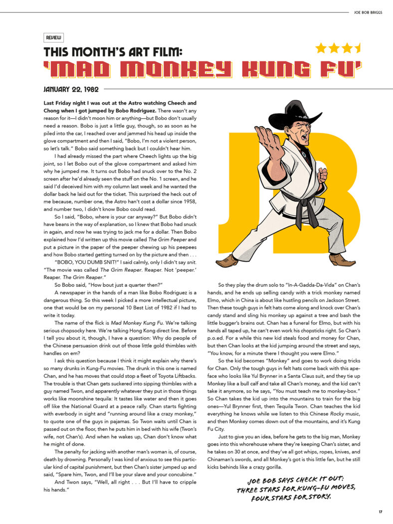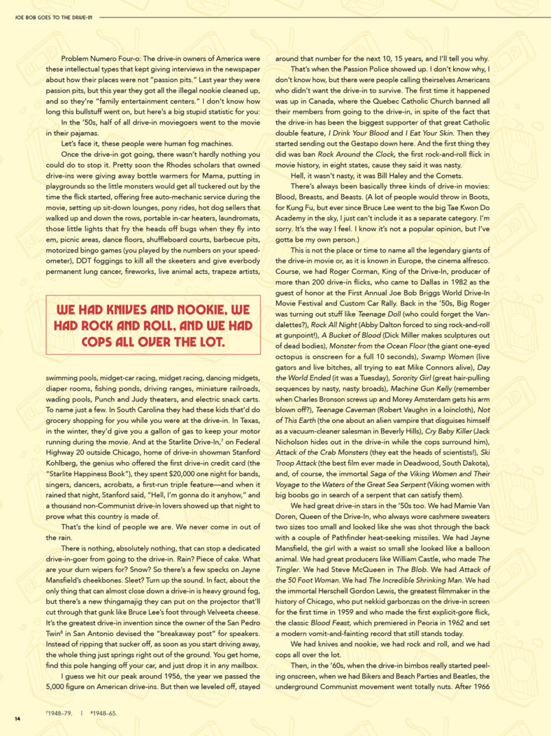 ACT TWO: The next day, on October 21, the book launch celebrations continue! Joe Bob Briggs will meet and greet fans and sign copies of the book at Movie Madness (4320 Belmont St., Portland, OR 97215) from 5 to 8 PM. This event is free to attend; no ticket is required. Dark Horse will have copies of Joe Bob Goes to the Drive-In available for purchase at the signing.