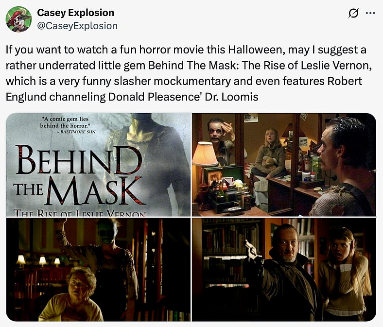 If you’ve already seen the recommendations mentioned above, don’t stress. We’ve got another one for you to check out that features self-referential scares mixed with clever comedy. And while there’s a good chance you’ve never seen it, it’s the very best in the game besides Scream. I’m talking about Behind the Mask: The Rise of Leslie Vernon.