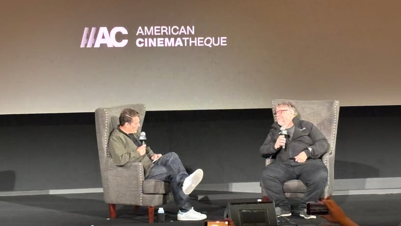 I step out of my wife’s car and face the Egyptian theater, located in the heart of Hollywood on Hollywood Boulevard. A strained hamstring prevents me from driving myself. But as I head into the sacred building amongst filmgoers, my limp disappears. There’s even a spring in my step. Because tonight, I get to see the one and only Guillermo del Toro introduce a trio of his films as part of the Beyond Fest at American Cinematheque’s “From Sketch to Screen” series. On the docket? Hellboy 1, Hellboy 2, and Blade II. My nerves are practically buzzing.