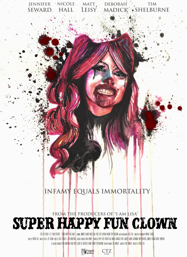 The supporting cast of Super Happy Fun Clown includes Tim Shelburne, Deborah Madick, Matt Leisy, Nicole Hall, Dan Daly, and Jamie Campbell.