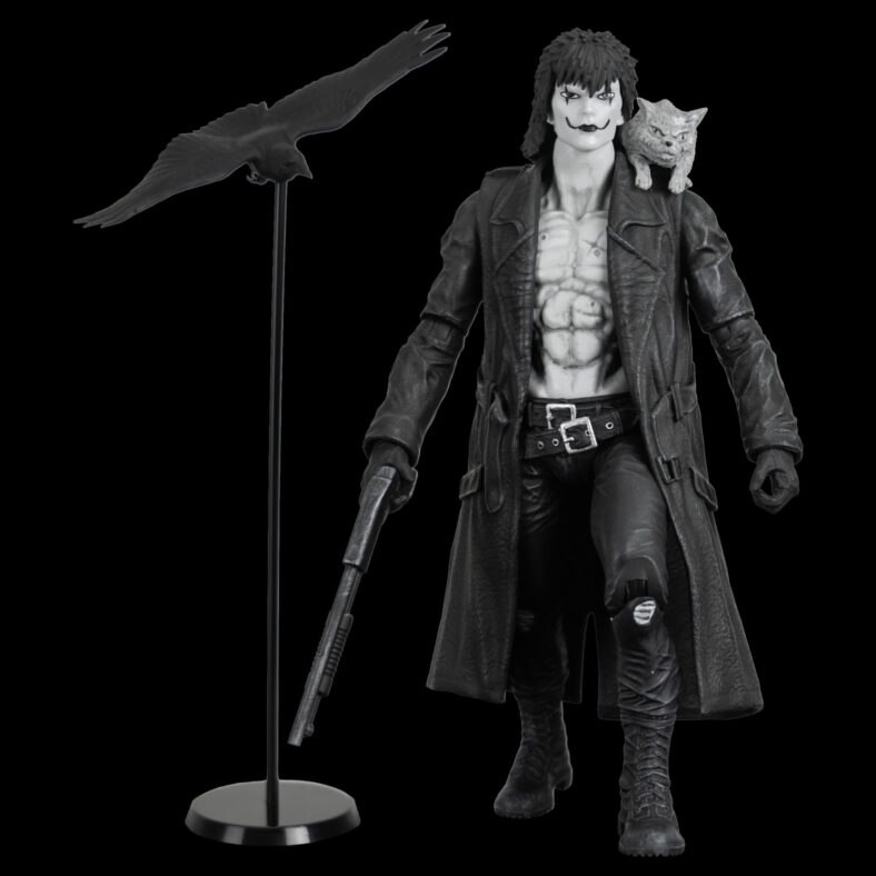 Next up, a finalized look at the stunning comic book version of Eric Draven from James O’Barr’s The Crow. He comes with a hit cat, a sword, a shotgun, and, of course, a crow.