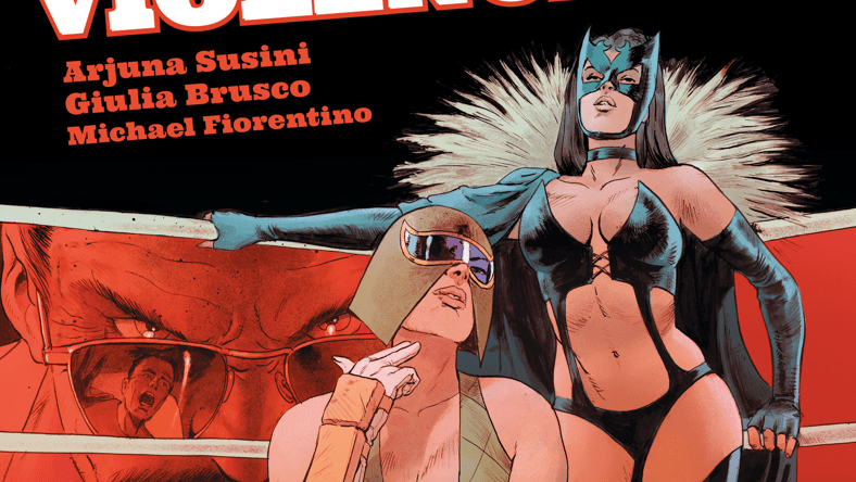 In the new graphic novel with art by Giulia Brusco and Arjuna Susini, Hungry for a better life, shy, dog-loving Krysten reinvents herself as a fierce lucha libre star in Mexico. In the gym, she trains against her inner demons and physical blows to distance herself from weakness. But when her trusted trainer—once a wrestling legend—betrays her with brutal violence, her dream career becomes a fight for survival against the corruption of prevailing champions.