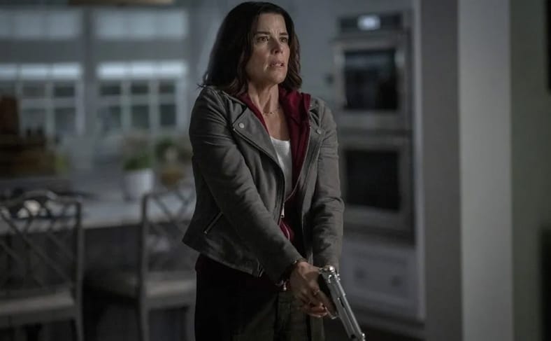 Neve Campbell, however, delivers a grounded and convincing performance. This iteration of Sidney Prescott feels human and imperfect, defined by protective parental instincts and slight emotional messiness. Campbell anchors the film with lived-in resilience that reminds audiences why Sidney remains the franchise’s necessary emotional core. It is refreshing to see a Scream film use her consistently, unafraid to make a grown woman its centerpiece after the last film left her out in the cold and the fifth entry used her sparingly.