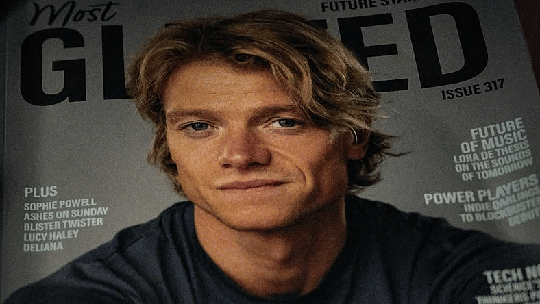 The newly released image presents Tom Rhys Harries as Matt Hagen… not as the disfigured villain, but as a rising actor featured on an in-universe magazine cover.