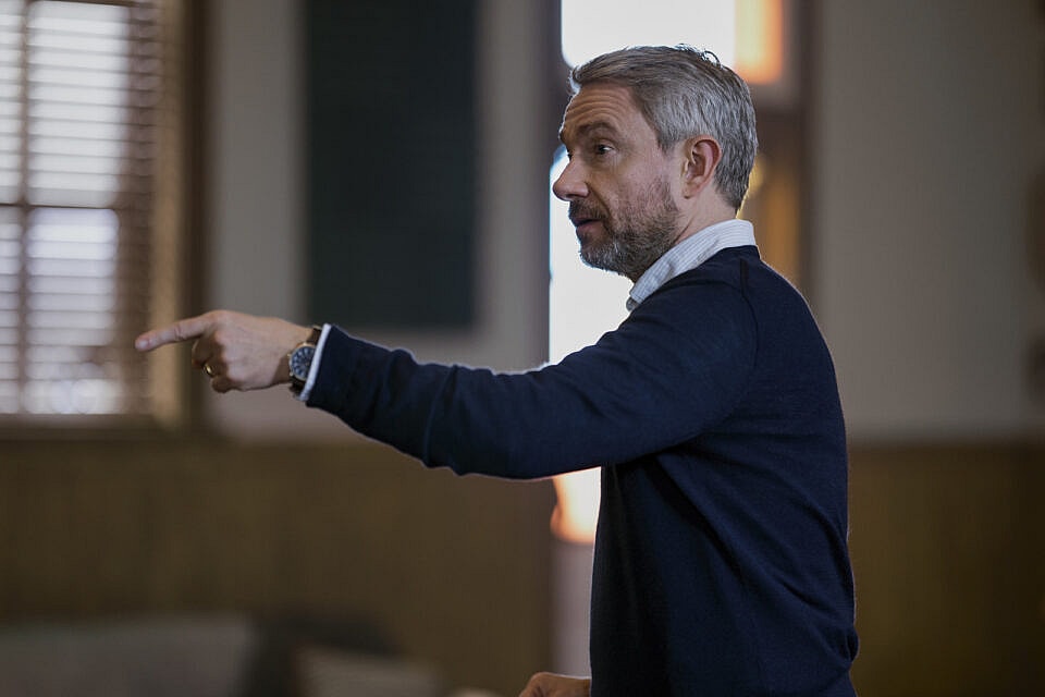 The film follows Cairo Sweet (Jenna Ortega) a wealthy 18-year-old left by her parents to live in her decadent home in the South. She is self-aware, driven, and, according to this script, a talented writer. She shows up on the first day of senior year and impresses the English teacher, Jonathon Miller (Martin Freeman). We soon discover Jon is a failed writer in a sexless marriage. Jon’s wife, Beatrice, is painted as a neglectful drunk who is also wildly successful and must yell into her phone while walking around the house in sleepwear. Jon takes an instant shine to Cairo. They enter a murky mentorship that’s an excuse for them to both get what they are truly seeking.